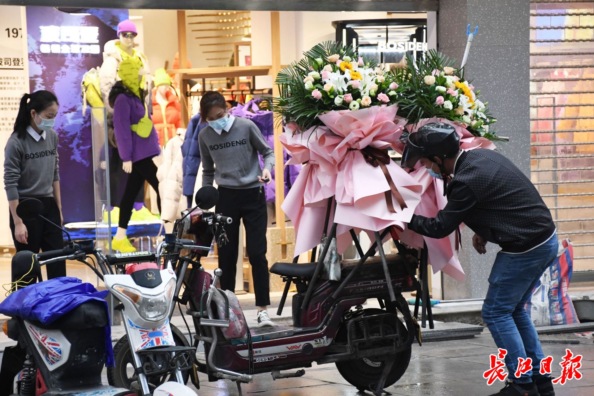 长江网9月29日讯 29日上午,经过整修的江汉路步行街开始试运营。不少店铺已装修一新,送花的小哥给店铺送来开业迎宾花束,各家店铺里的店员都在为试运行忙碌着。(记者詹松 摄影报道)