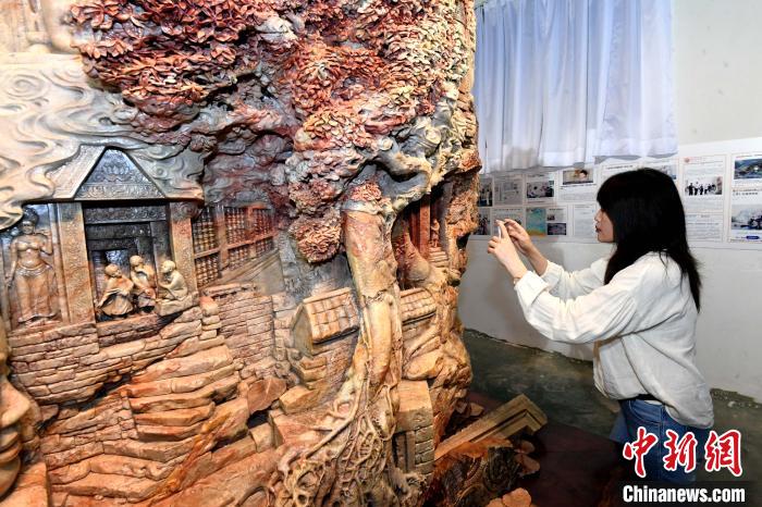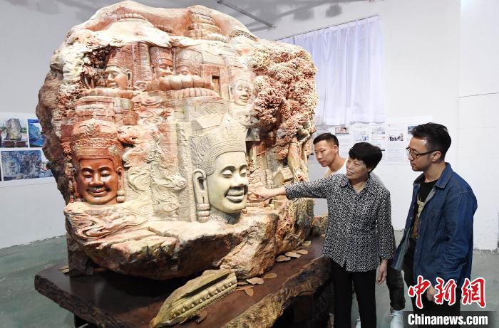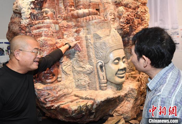 巨型寿山石雕作品《吴哥之美》吸睛。 记者刘可耕 摄