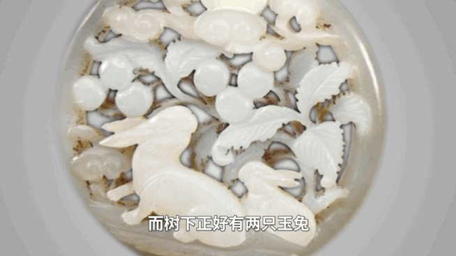 环内雕刻着双兔望月图