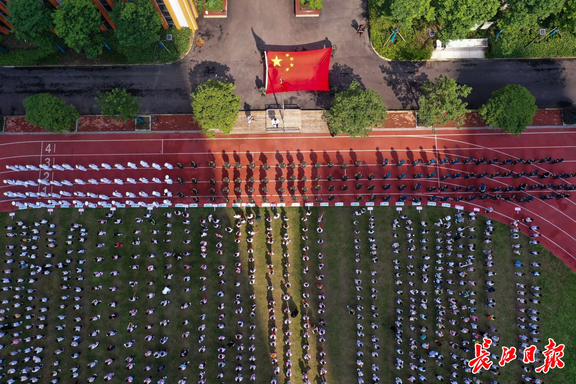 长江网9月30日讯 9月30日,烈士纪念日。武汉市江汉区中小学的186名升旗手在红领巾实验学校参加升旗仪式。国歌唱毕,全体师生肃立,向为中国人民解放事业和共和国建设事业英勇献身的烈士默哀。(记者彭年 摄影报道)