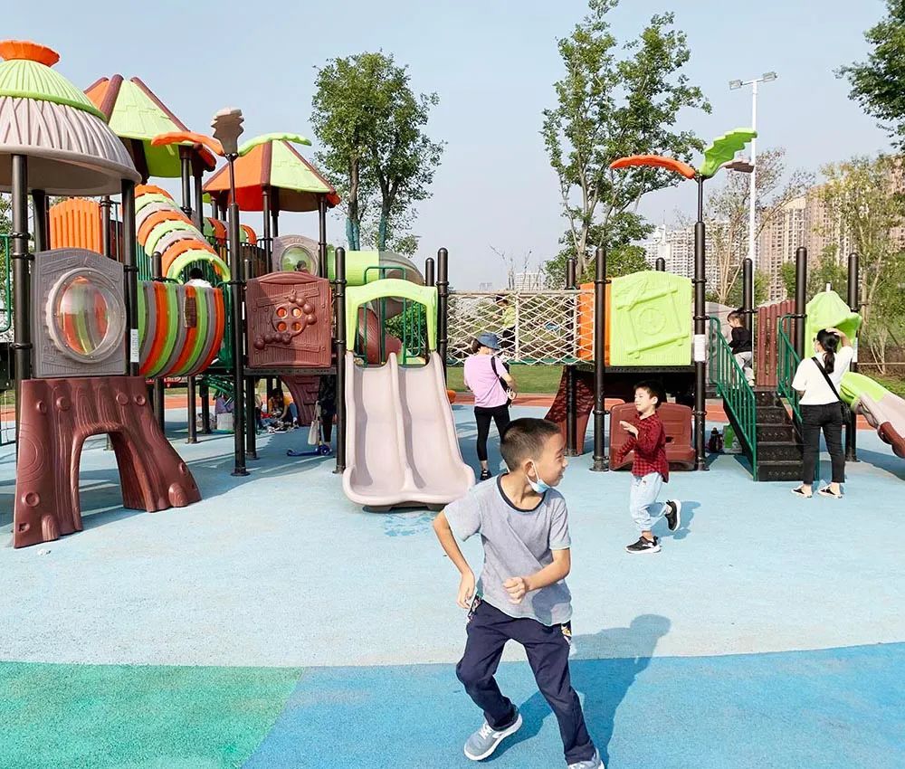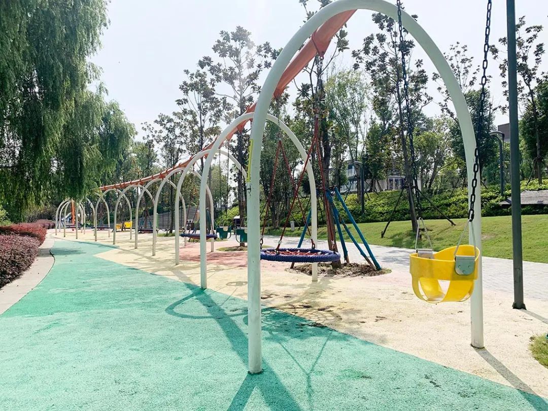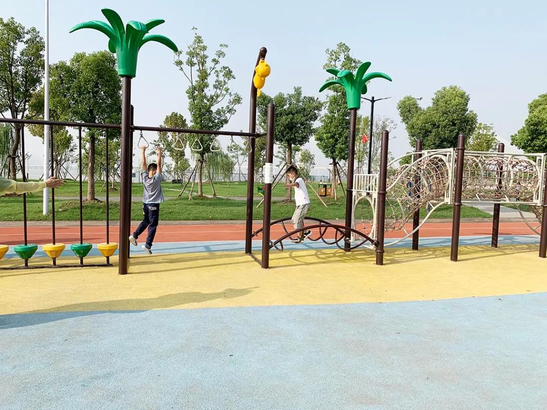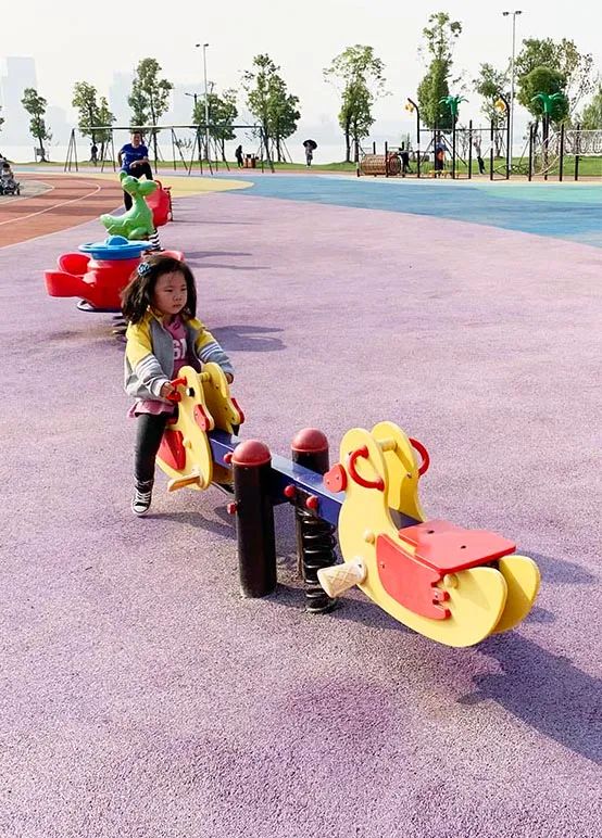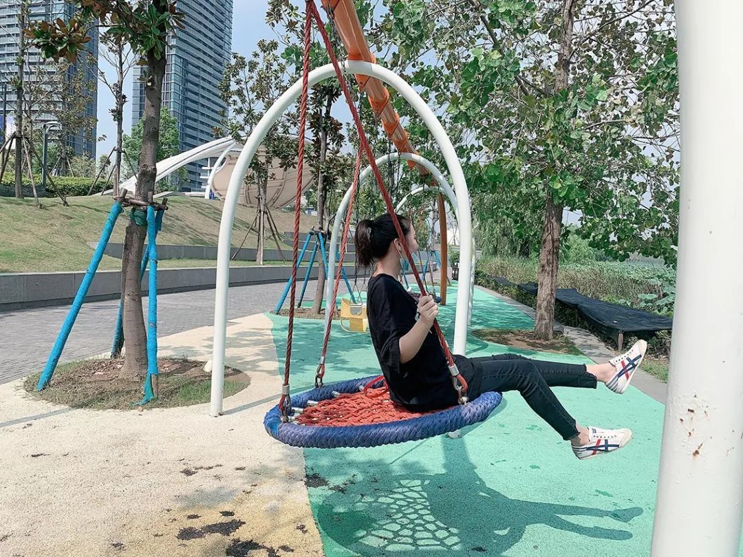 华侨城运动公园在东湖绿道上,场地开阔,设计了独立的跑道,各类儿童游乐设施齐全,除了摇摇马、滑梯、沙坑、秋千外,还有超大的攀爬架——孩子们像小松鼠一样上蹿下跳,父母就可以在附近草地上野餐啦!