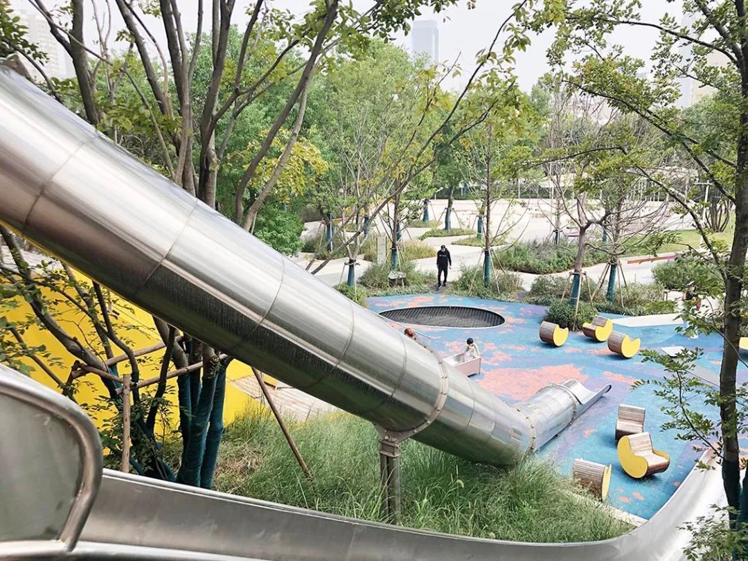 它是一个地产配套公园项目,公园造型设计中具有较多的重金属元素,整体非常有未来感。