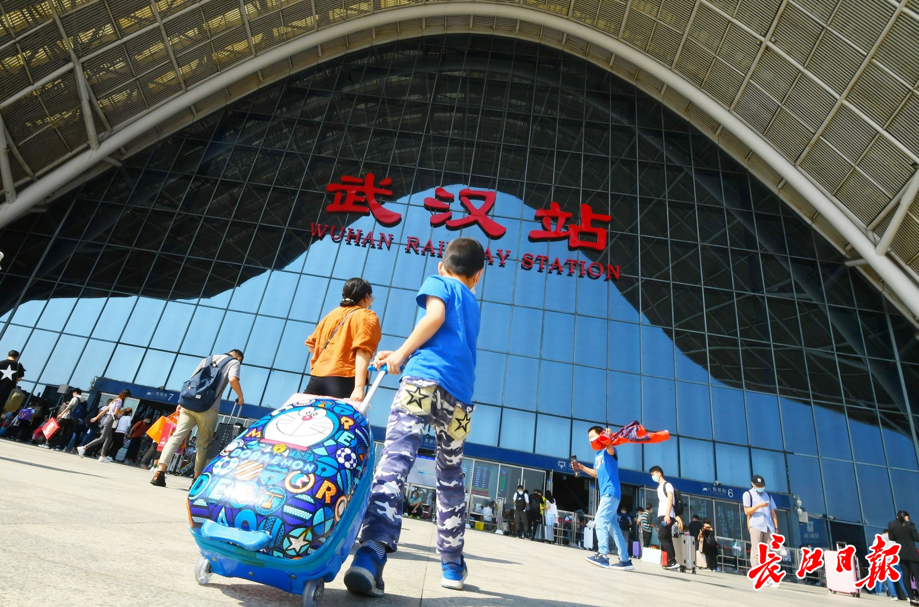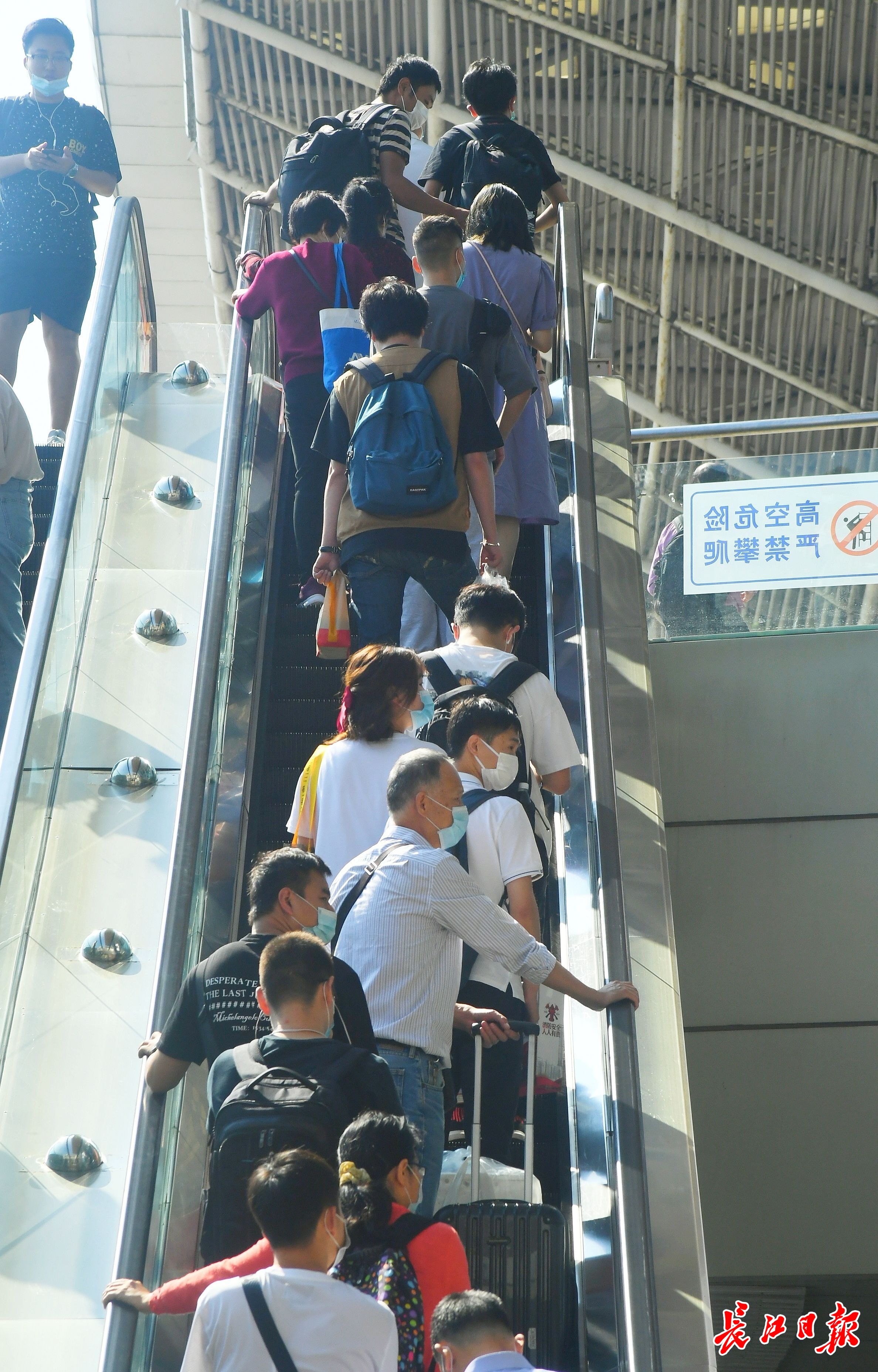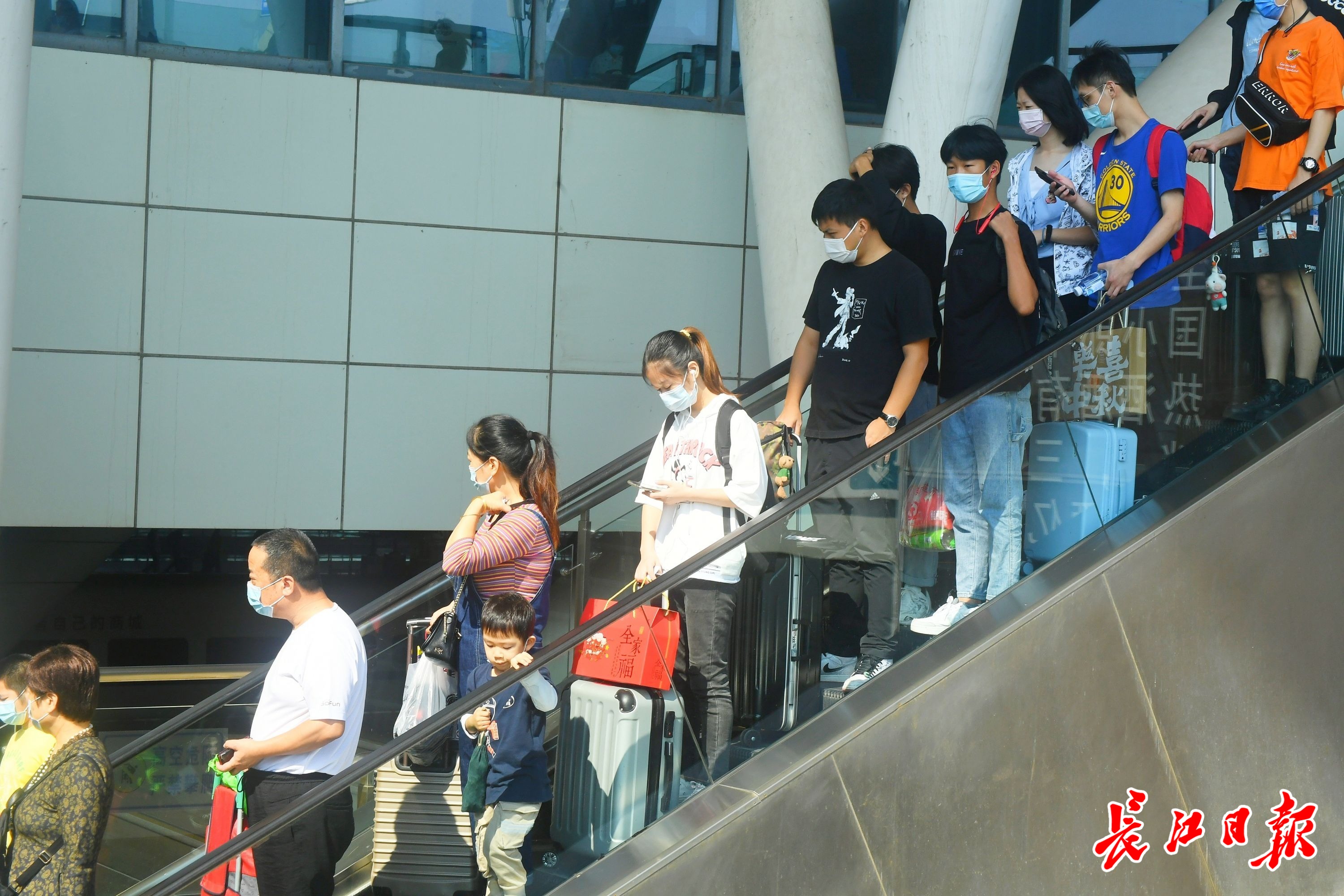 长江网10月1日讯10月1日,旅游、探亲客流会聚武汉三大火车站,武汉铁路部门迎来出行高峰。图为武汉火车站,出行客流川流不息。(记者李子云 摄影报道)