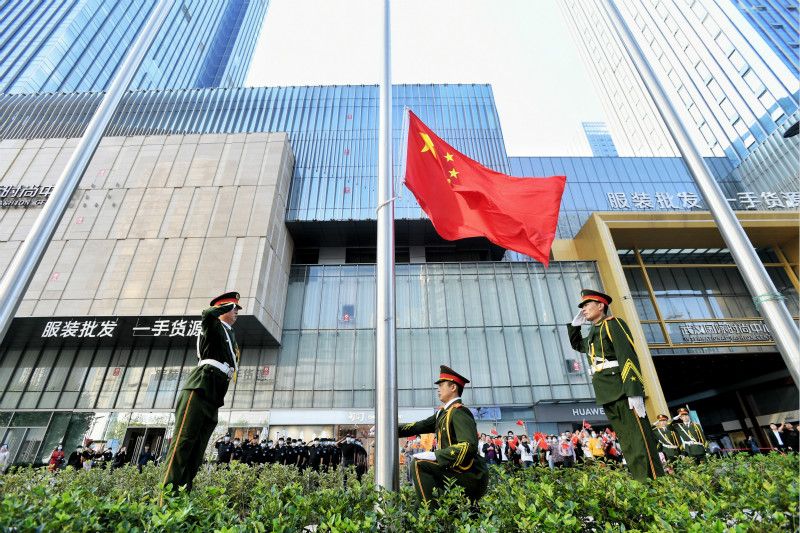 荆楚网客户端—荆楚网消息(通讯员 余鲁西)10月1日早上8点30分,在云尚武汉国际时尚中心中山大道广场,一百多位云尚商户及工作人员见证了一场别开生面的升国旗仪式。国旗上升后,大家在广场上挥舞着小国旗合唱《我和我的祖国》,用歌声表达了对祖国的热爱。