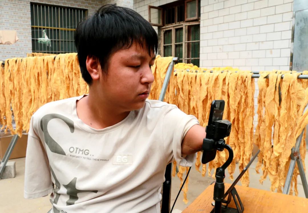 四年前的一次意外电击,让这位“90后”小伙失去了双臂,双腿也失去知觉。去年10月,他成为淘宝平台上的10万农民主播之一。