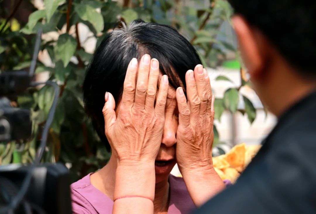 孙亚辉的母亲接受采访时落泪。 吕达 摄