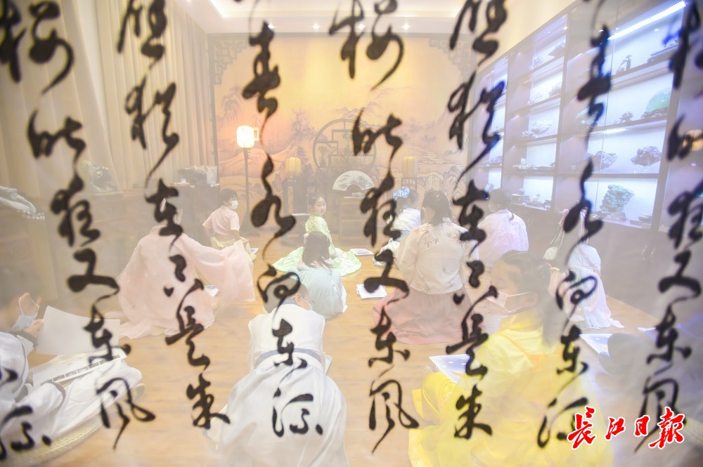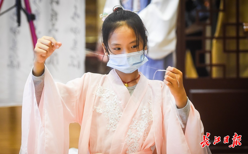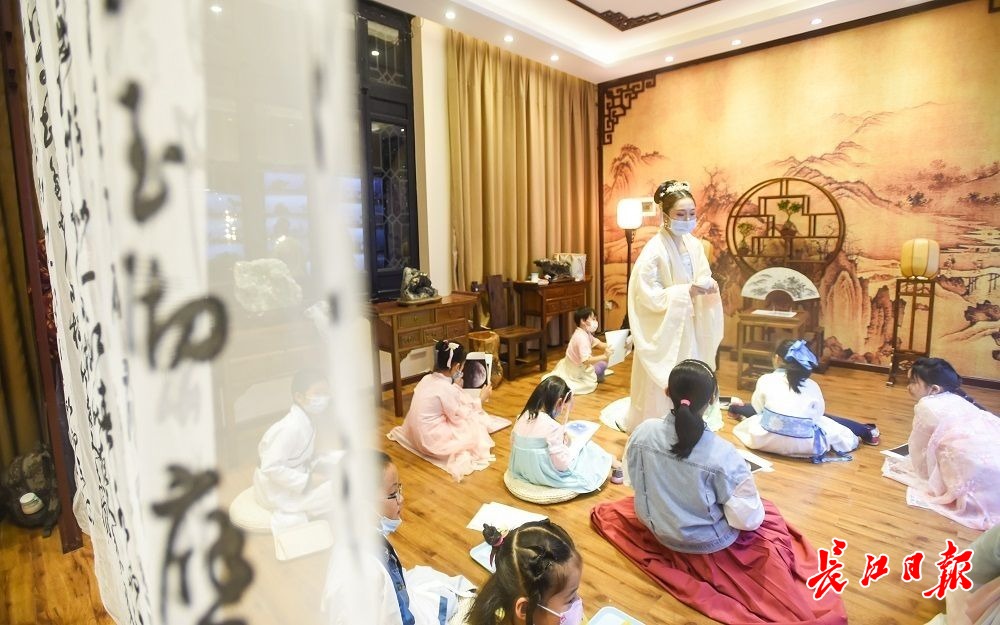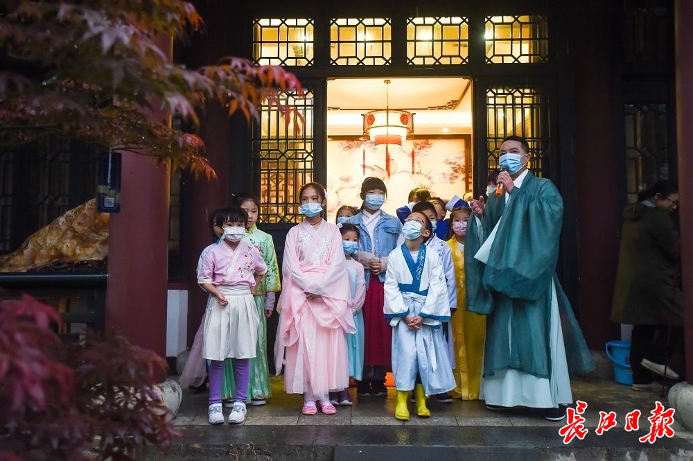 长江网10月3日讯10月3日傍晚,中华奇石馆举办中秋国庆假期夜游会。10组亲子家庭着传统汉服报名参与活动,桂子树下话中秋,探索月亮的秘密。(记者许魏巍 摄影报道)