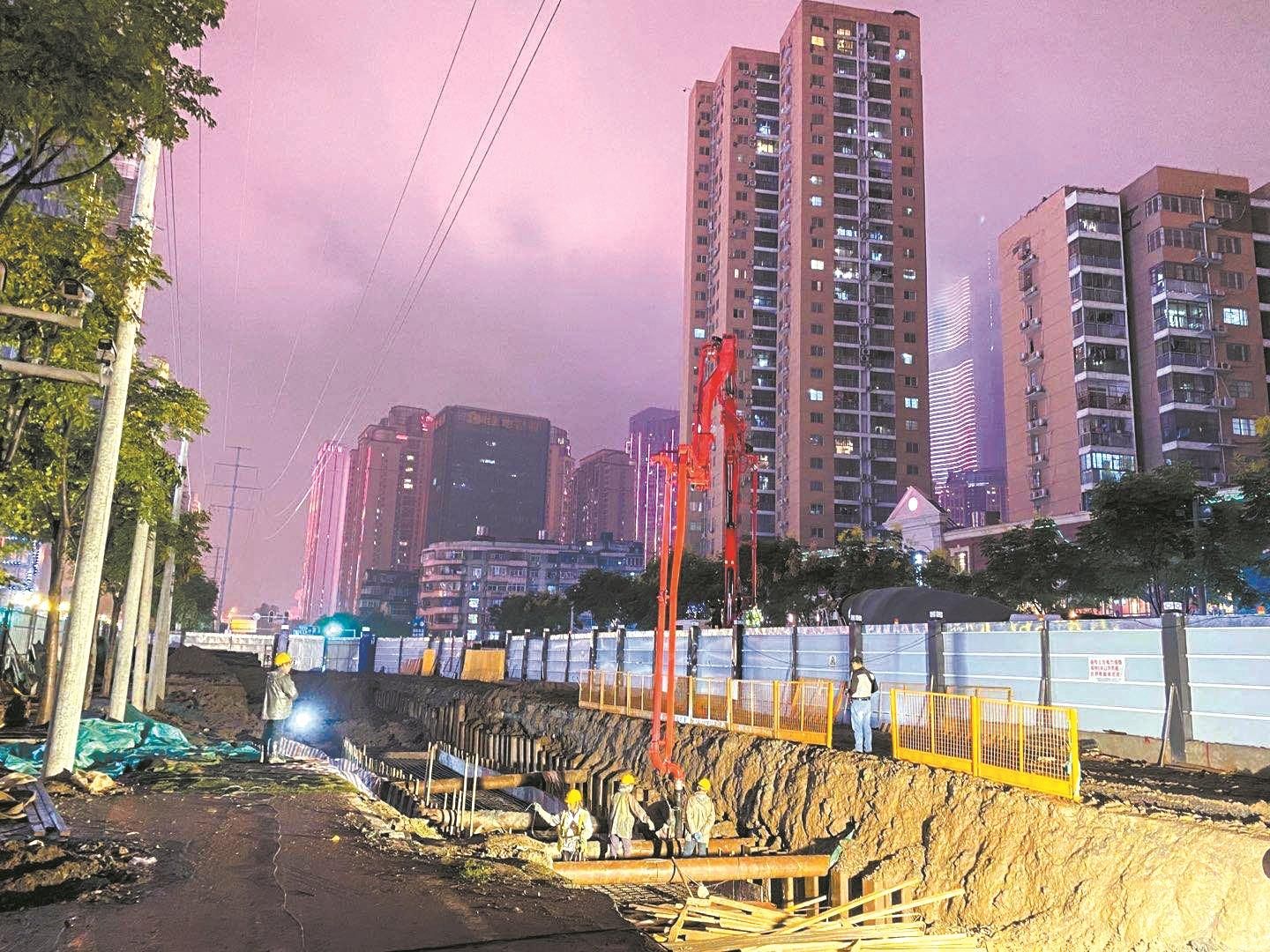 友谊大道处于交通繁华地段,国庆期间持续降雨,给施工带来影响,但现场文明施工有条不紊。