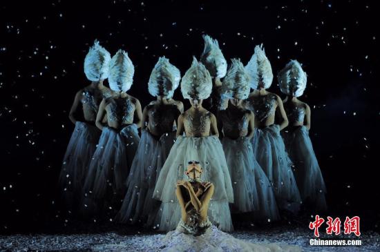 资料图:2018年1月29日晚,舞剧《孔雀之冬》在天津大剧院上演。从《孔雀公主》、《雀之灵》到《雀之恋》,60岁的杨丽萍以独特的舞蹈语言和不同阶段的生命之美,诠释生命中的爱与时间。 中新社记者 佟郁 摄