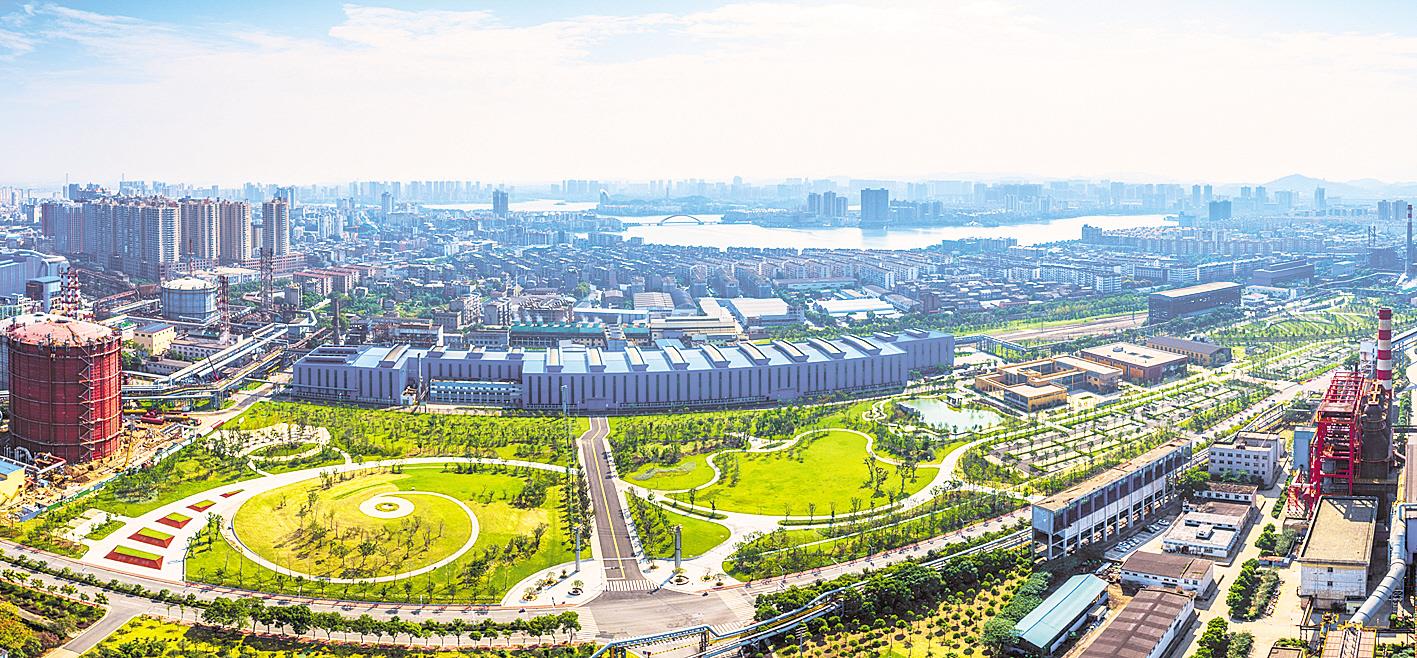 俯瞰鄂钢,花园式工厂与城市相融共生。(湖北日报全媒记者 薛婷 通讯员 桂多 摄)
