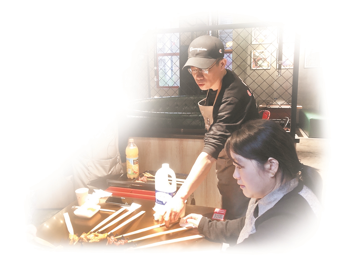 陈俊在自家餐厅为客人服务