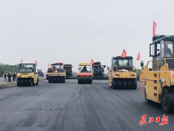 长江网10月8日讯(记者王谦)今年年底,四环线将全线贯通。10月6日,长江日报-长江网记者来到武汉北四环黄陂段探访,路面沥青摊铺工程已完成过半,建设者正为四环线画圆做最后冲刺。