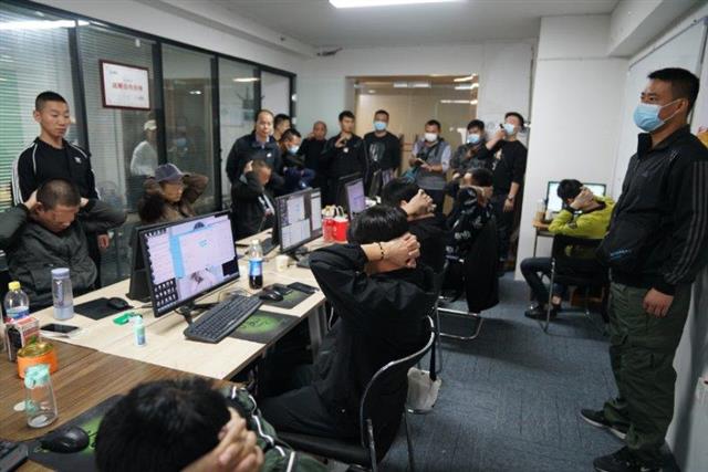 10月8日下午,攻坚专班民警在汉阳某写字楼捣毁一个电信网络网络诈骗窝点。