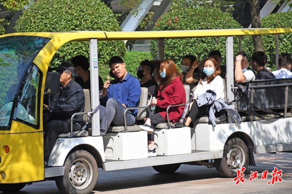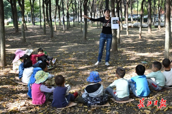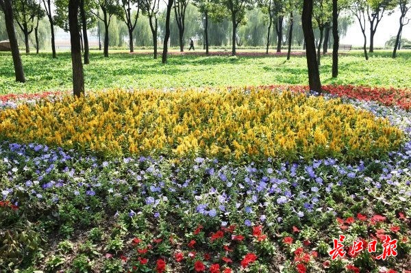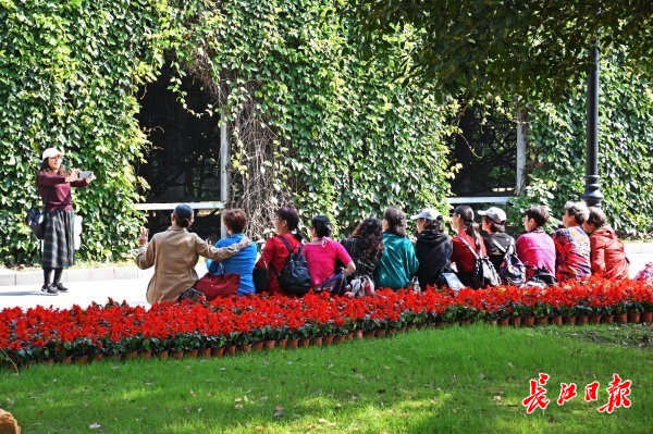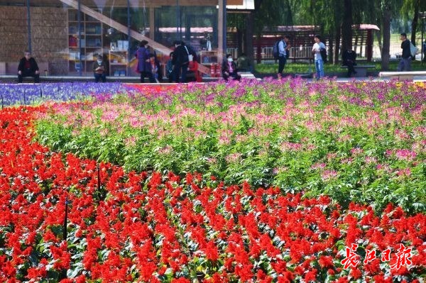 长江网10月10日讯 10月10日,武汉天气晴好,阳光和煦。在汉口江滩公园,各种花卉五彩斑斓,花开似锦,众多游客来此游玩。一群孩子在老师的带领下,学习认识各种植物。(记者詹松 摄影报道)