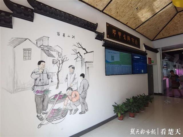 昨天下午,在汉阳邓甲生鲜市场门口,记者一眼看到“洪山菜薹”“煨藕汤”“炸面窝”等主题手绘,大武汉文化风格凸显。