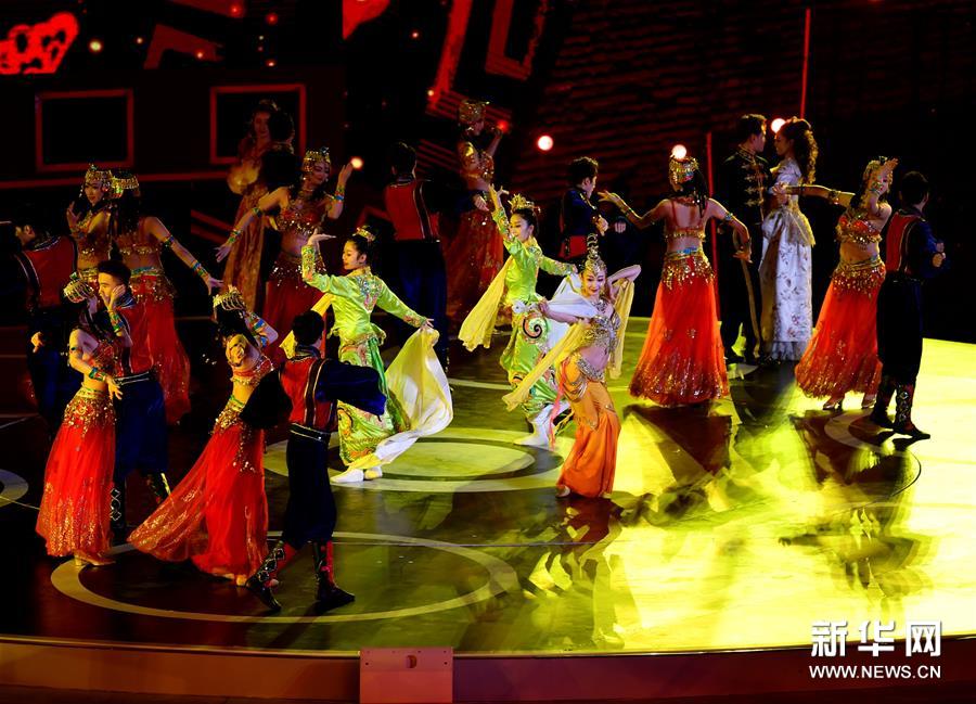 10月11日,演员在第七届丝绸之路国际电影节开幕式上演出。新华社记者 张博文 摄