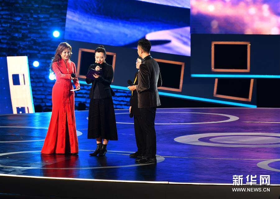 10月11日,演员郝蕾(左二)在第七届丝绸之路国际电影节开幕式上推荐影片。新华社记者 张博文 摄