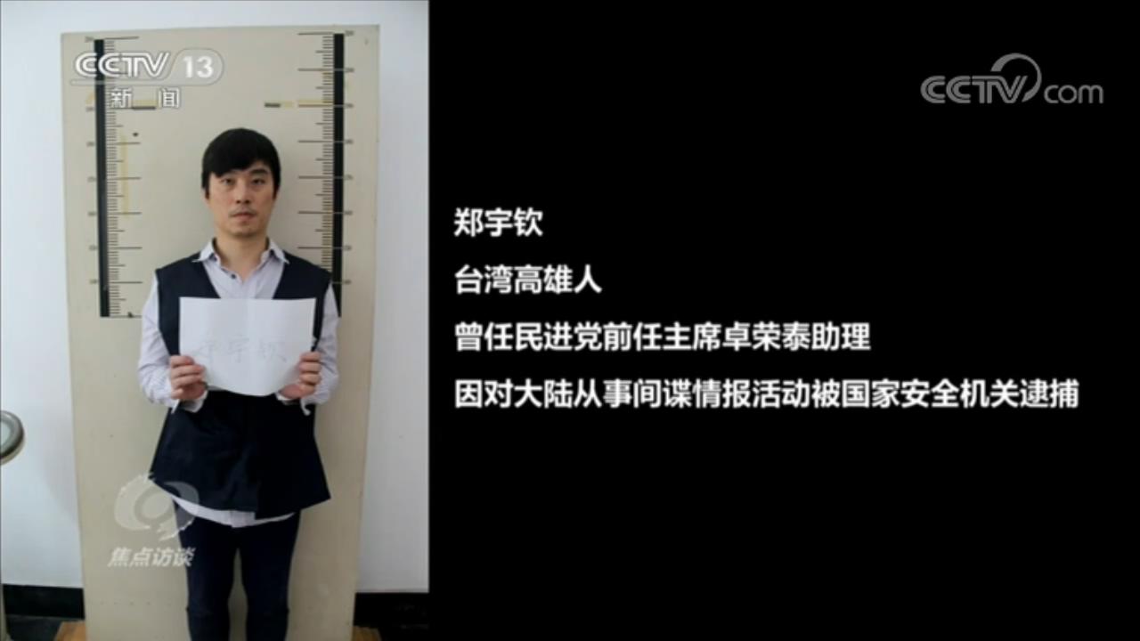 郑宇钦,台湾高雄人,曾任民进党前任主席卓荣泰助理,因对大陆从事间谍情报活动被国家安全机关逮捕。