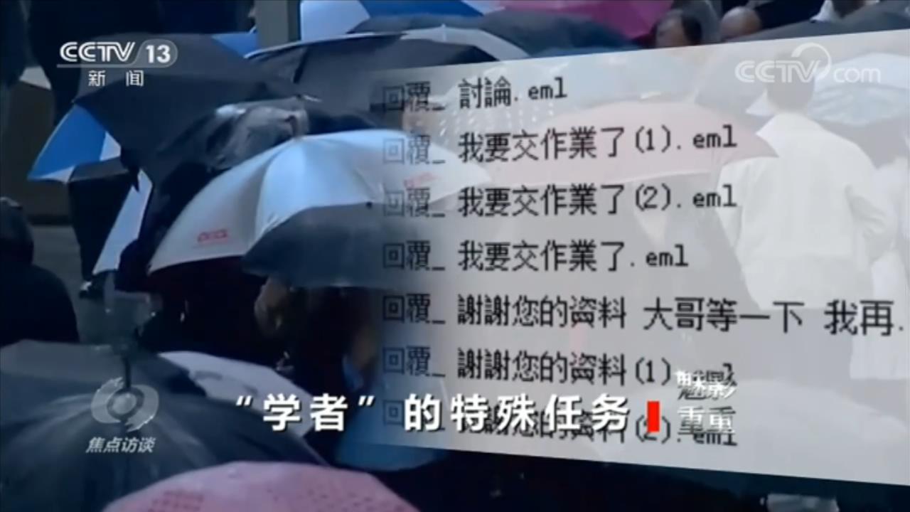 央视网消息(焦点访谈):近年来,“台独”分子的活动范围已经不再局限于大陆和台湾。在台湾民进党当局的指使下,台湾情报机关在其它国家和地区安插和发展“台独”分子,让他们在外为自己搜集有关祖国大陆的情报,刺探其它国家对大陆一些事务的看法。这些人除了搜集情报,还会不断寻找机会抹黑大陆。