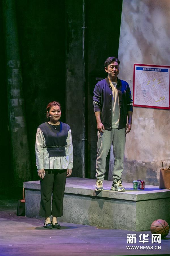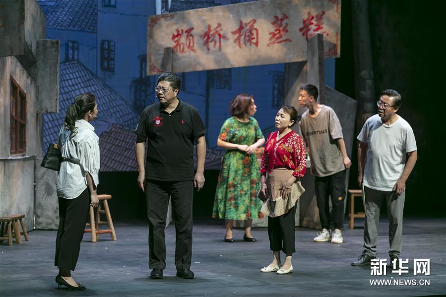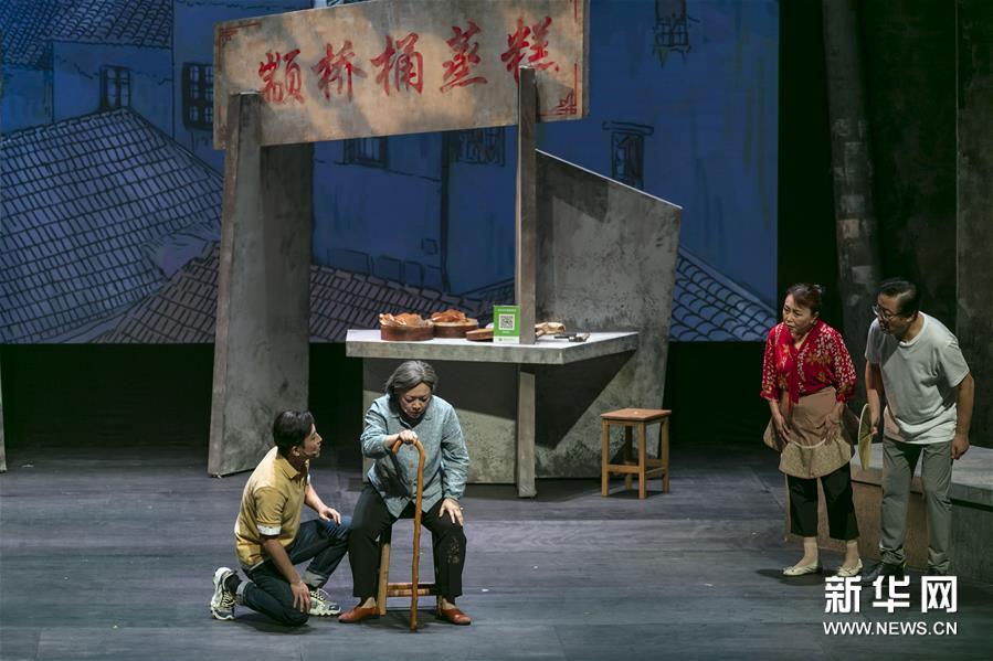 10月13日,演员在表演原创话剧《老街》。当日,上海市闵行区颛桥镇戏剧周原创话剧《老街》在颛桥镇文体中心展演。话剧《老街》以颛桥老街旧区改造的真实故事为素材,通过百姓视角,讲述当地百姓生活变迁的故事,为社区居民献上文化大餐。新华社记者 王翔 摄