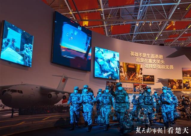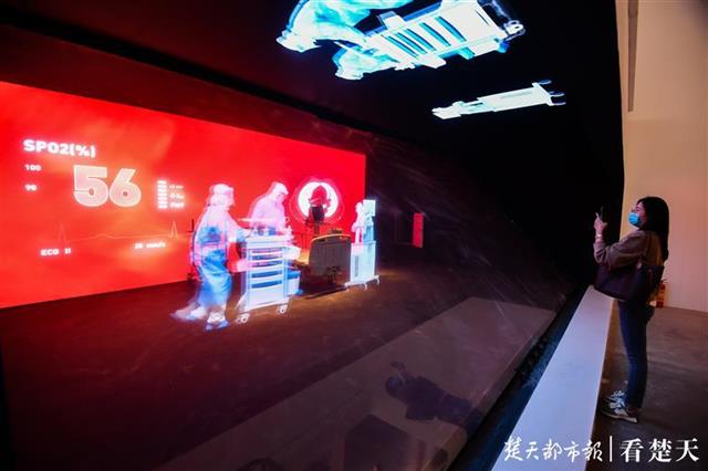 在展厅内,“ICU病房”里面对不断下降的血氧饱和度,“插管小分队”与病毒近身搏斗,那是不放弃每一个生命的你我;在亿万人民云监工下的“两山”医院建设现场,那是不浪费一分一秒的你我;实地还原的方舱医院里,墙上每一张笑脸和加油的漫画,那是携手与病魔抗争的你我;居家战疫的影音墙壁上,闪现出的高歌与笑脸,那是乐观与坚强的你我;逆行出征的实景里,一身迷彩、白衣为甲,那是划破黑暗传递希望的你我……