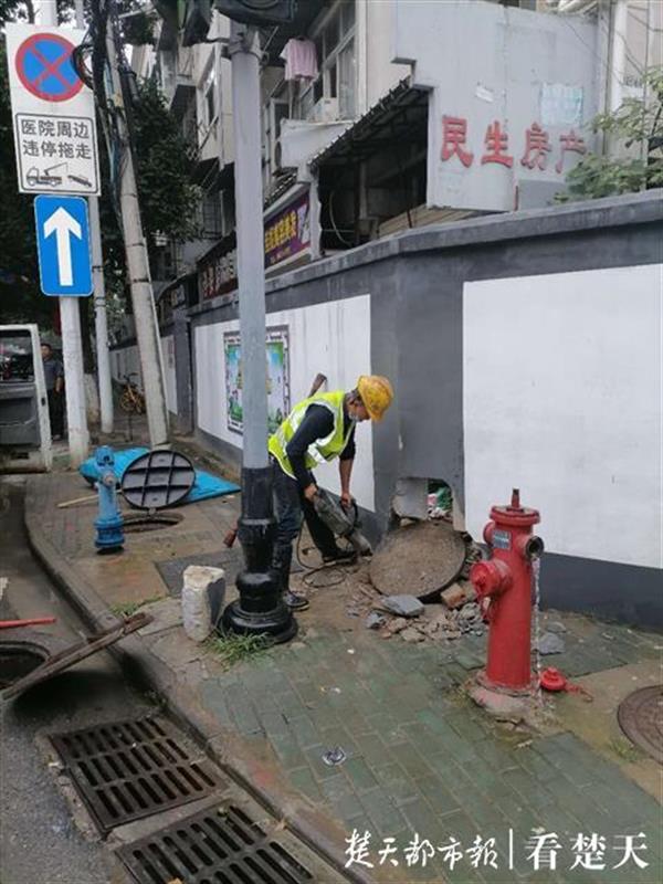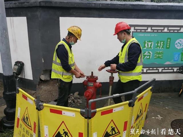 记者拨打了武汉市水务集团有限公司热线96510,抢修人员很快赶到现场。抢修人员李先生告诉记者,经检查,他们发现该消防栓丝杆被破坏,但闸门被一旁的拆迁围墙部分遮挡,施工人员只能用电镐将墙破开,暂时关闭阀门止住了水。此后又将丝杆换新,重新开启阀门。