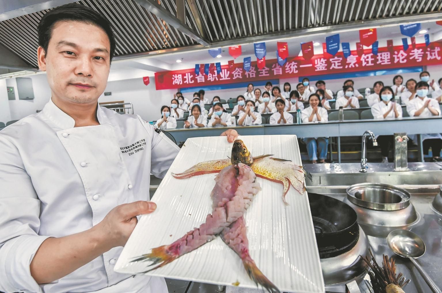 邹志平,在一家酒店担任总厨,也是湖北经济学院烹饪与营养教育专业教授,此次获得“湖北工匠”殊荣,他深感肩上的担子更沉了,“工作上,要不断研发创新楚菜,提升楚菜品质,传帮带上,教好学生、带好徒弟,传承楚菜烹饪技艺。”