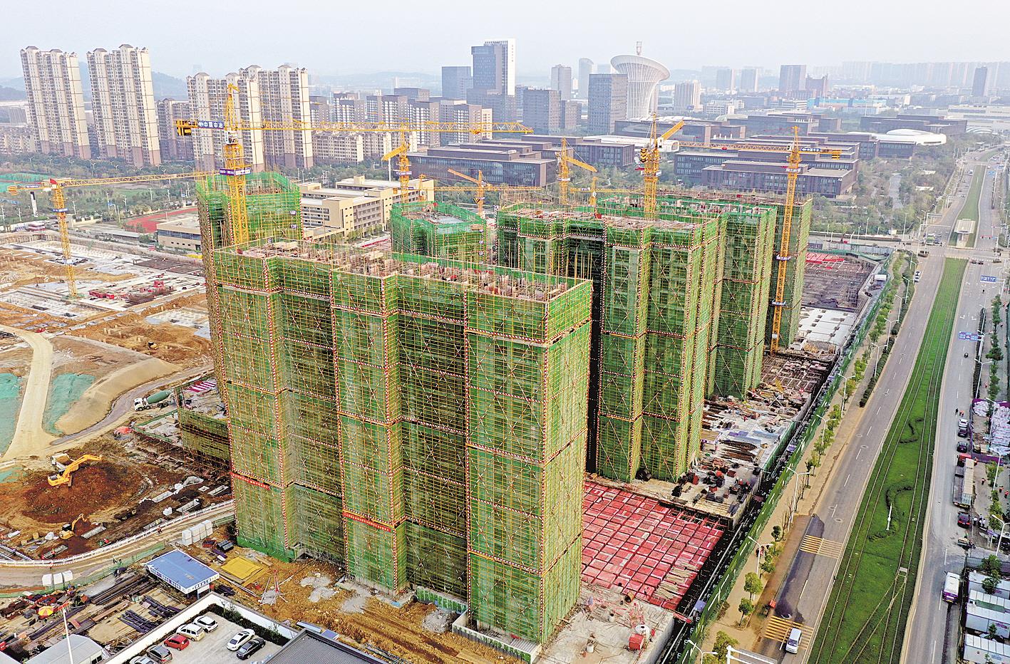 武汉光谷未来科技城青年社区一期工程4幢高层公寓即将于本月底封顶。公寓建筑面积约26.4万平方米,户型面积从35-150平方米不等,共计4902套;商业配套建筑面积约12.1万平方米。项目共分为两期开发建设,其中一期共计3141套,预计2021年6月交付使用。二期共计1761套,预计2023年7月竣工交付。据介绍,该社区将利用5G、物联网、人工智能等多种前沿技术,打造智慧社区式长租公寓标杆项目,助力大学生留汉。(湖北日报全媒记者 李溪 摄)