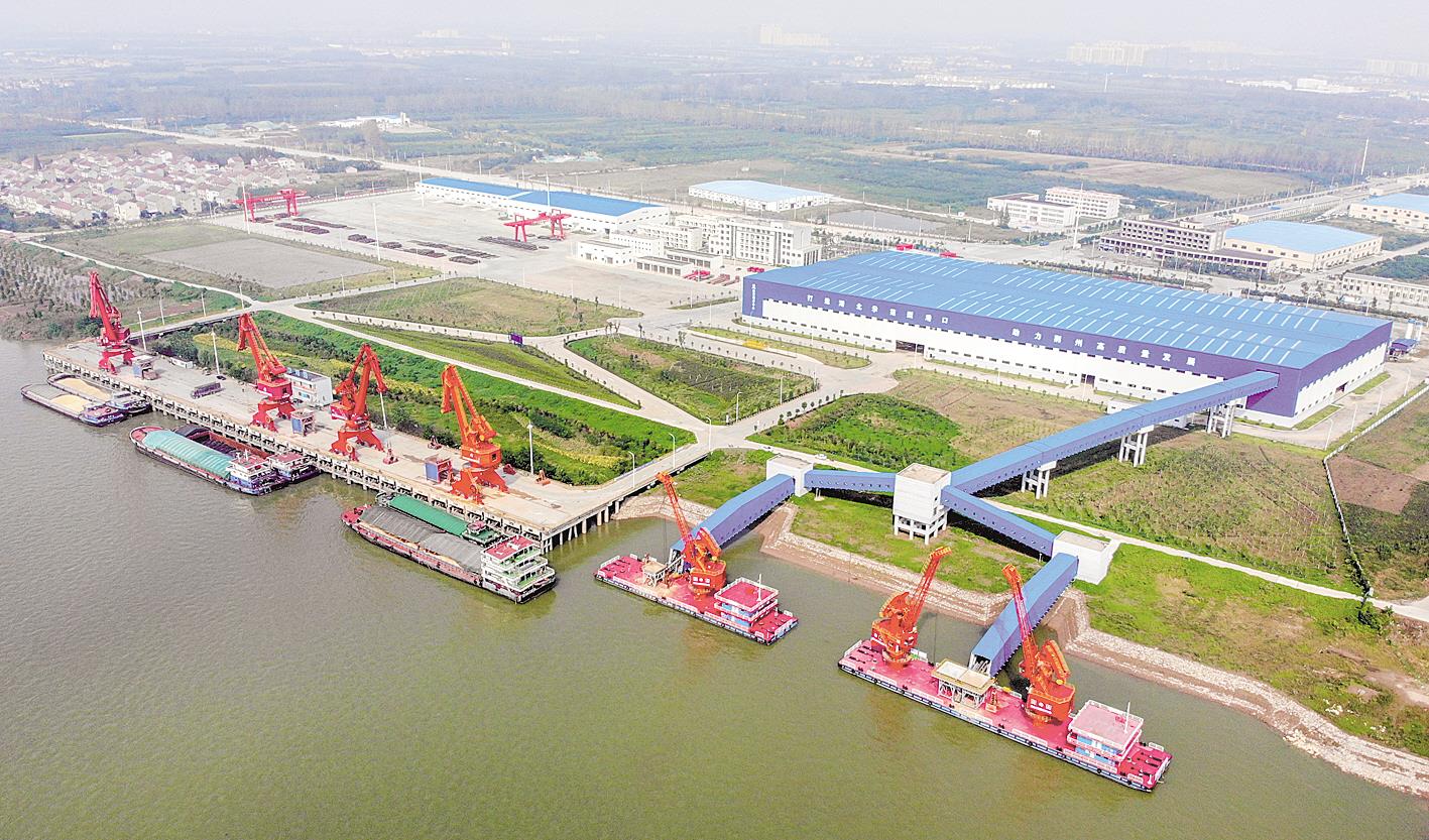 10月9日,无人机拍摄运营中的荆州港李埠港区一期综合码头。经过近三年的建设,该码头工程近日通过竣工验收,总投资4.6亿元,建有6个1000吨级泊位,年吞吐量达460万吨。这标志着我省环保规格最高的港口正式建成运营。近年来,荆州投入近40亿元,为“生态港口”建设按下快进键。荆州盐卡港的水公铁多式联运功能加快完善;松滋车阳河港二期、洪湖新堤港、江陵石化码头等重点工程也正在边建设边运营。 (湖北日报全媒记者 田悦 通讯员 黄志刚 摄)