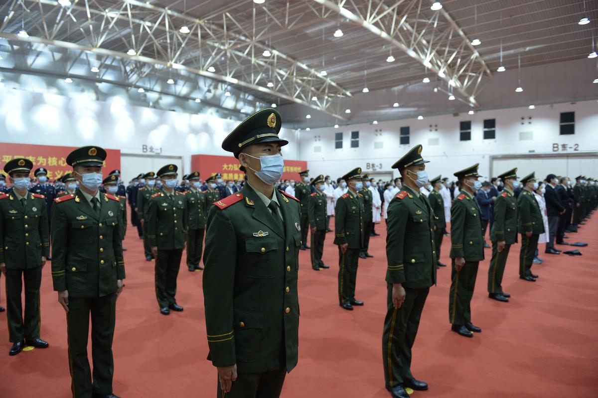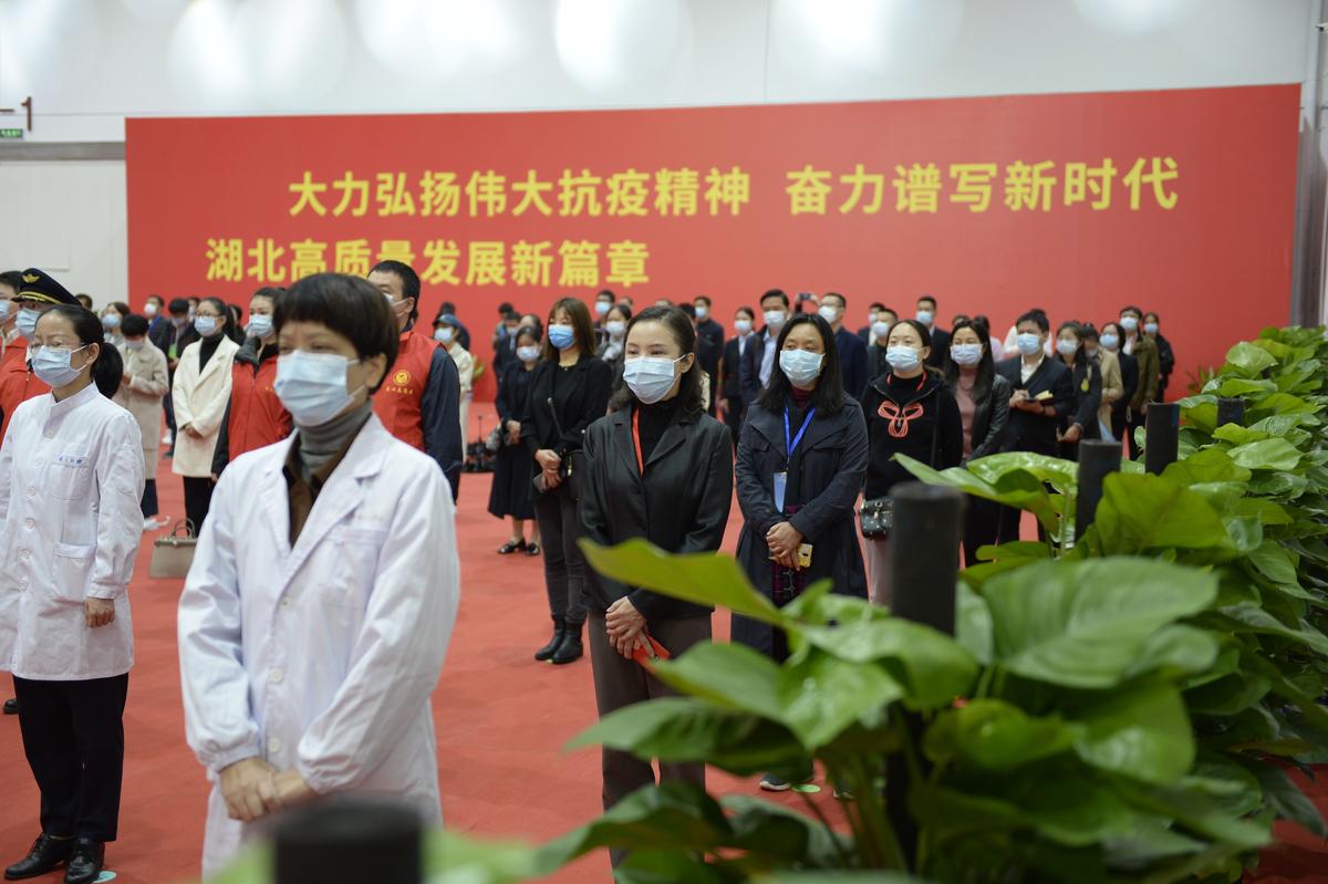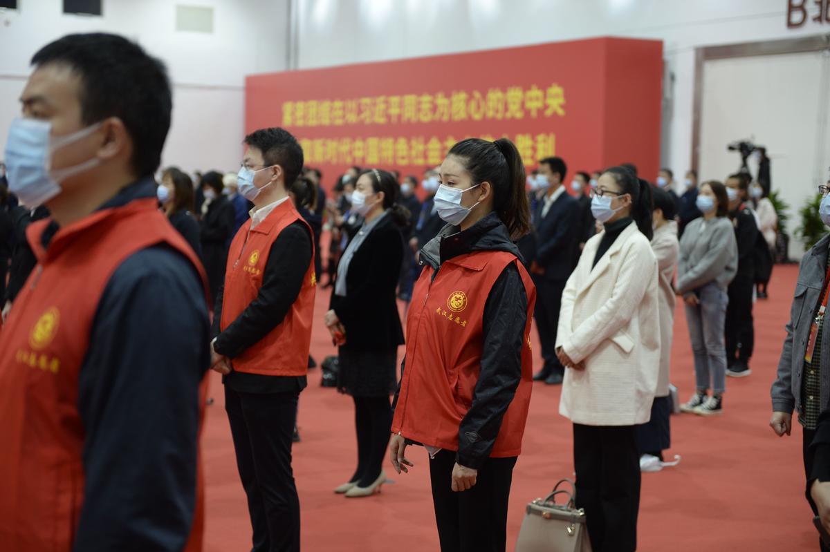 “人民至上 生命至上——抗击新冠肺炎疫情专题展览”开幕式现场。(湖北日报全媒记者 蔡俊 摄)