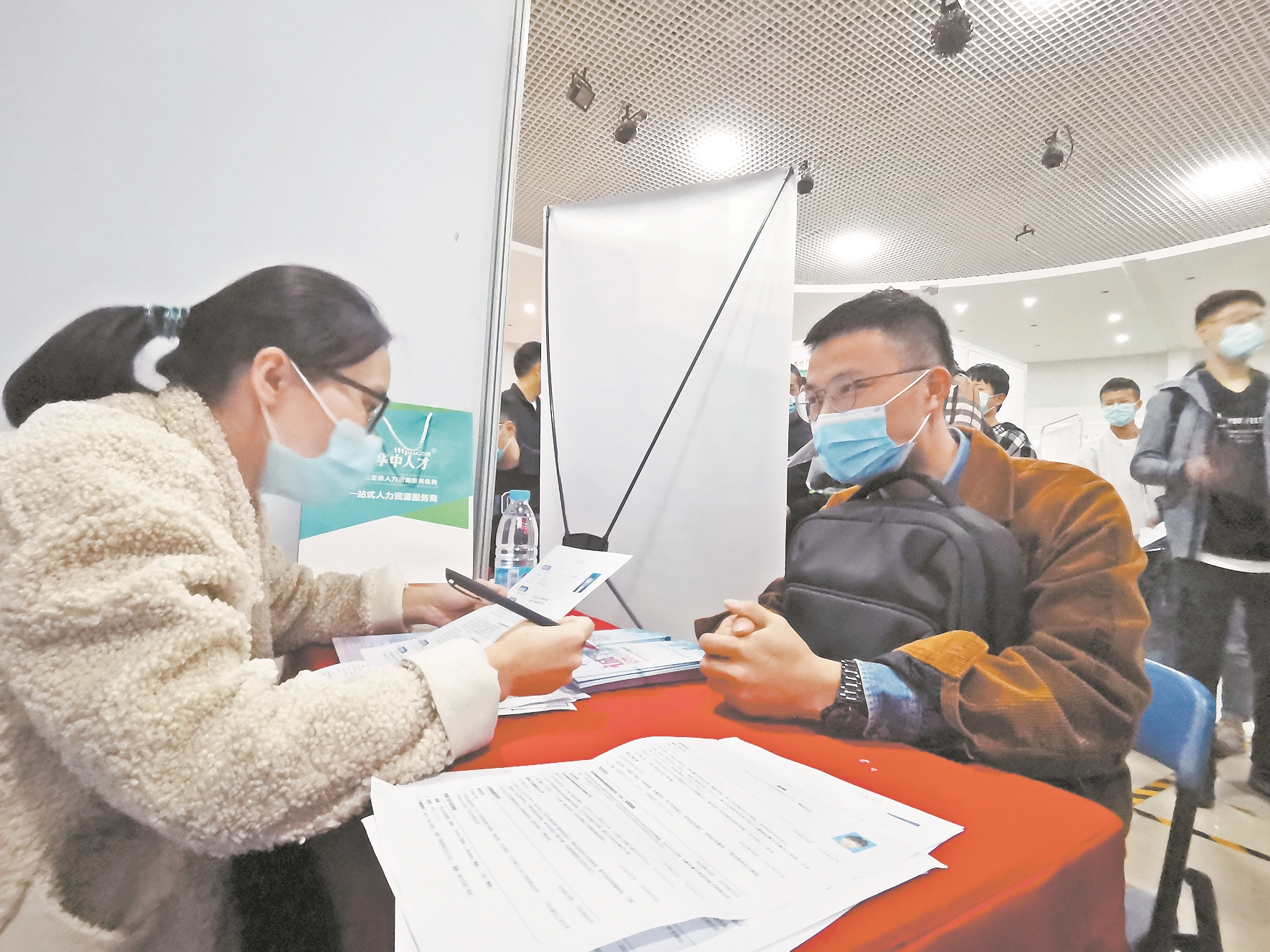 记者发现,华中数控、人福药业等知名企业展位被求职者围满;而像猿辅导、学而思、学易优、新东方等线上线下教培机构展位前也吸引了不少人驻足。