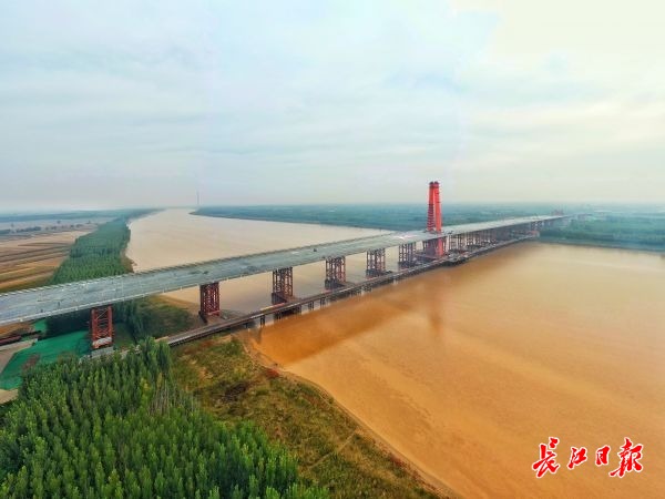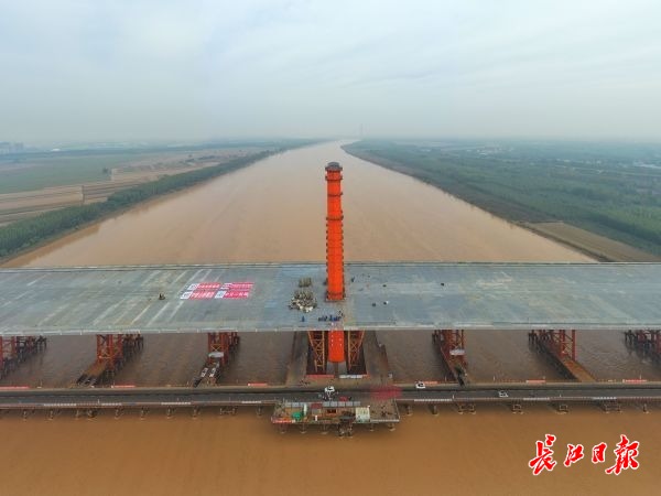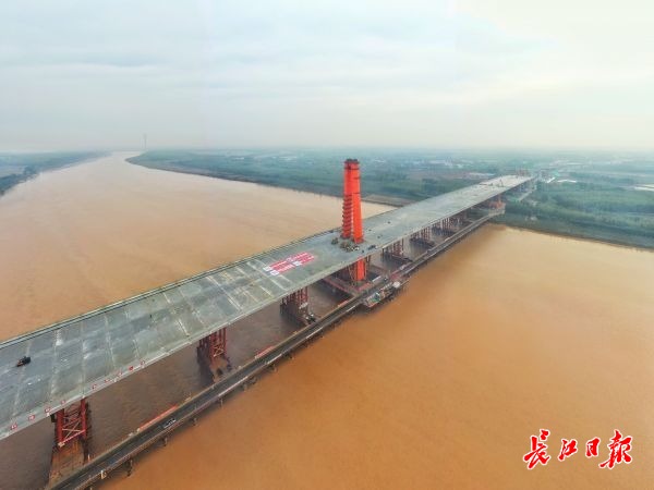 长江网10月16日讯 61.7米!10月15日,目前黄河上最宽的桥梁——济南凤凰黄河大桥主桥顺利合龙。该桥由在汉央企中交二航局承建。