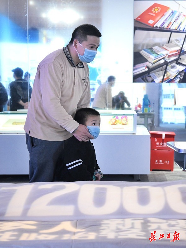 为安全起见,疫情防控期间,李磊一直没回家,半年多没有陪过孩子。16日他正好有空,特意带着两岁多的儿子来参观抗疫专题展览。李磊说,孩子还小,对这场战疫没有深刻记忆,所以带他来感受抗疫细节,告诉他“爸爸参与了这场大‘战役’!”