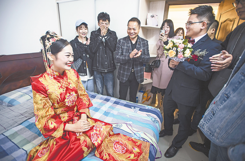 推迟200余天,延期3次,10月18日,一场迟到的婚礼终于举行。新娘名叫龙飘,是武钢第二职工医院糖尿病足病科护士长;新郎名叫周小龙,在武汉从事汽车软件设计工作。当日,在好友祝福下,他们步入婚姻殿堂。