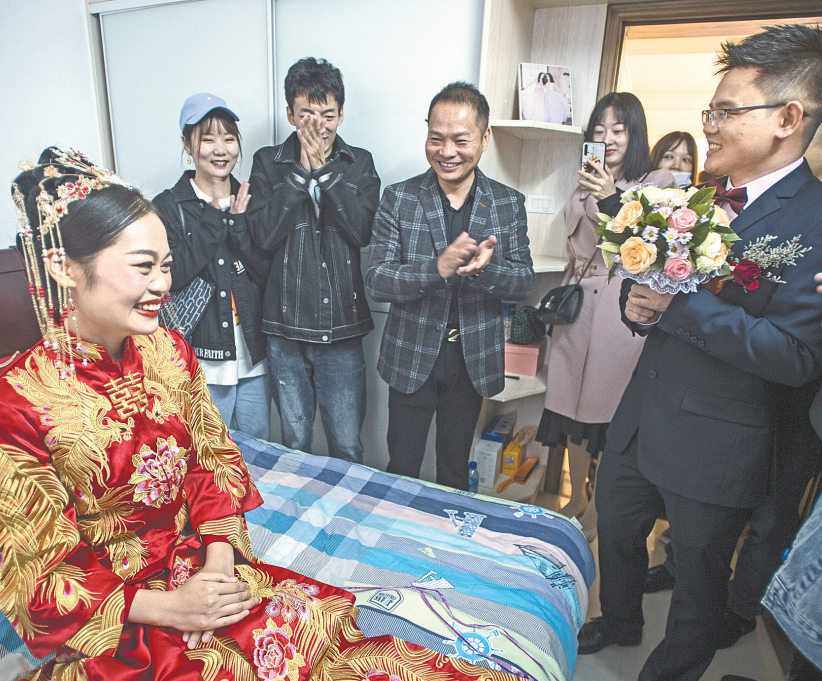 5月10日,龙飘结束缓冲隔离病区的工作,需隔离14天进行医学观察。龙飘和周小龙商量:“婚礼再推一推吧。”周小龙宽慰她:“我只要你没事就行。”