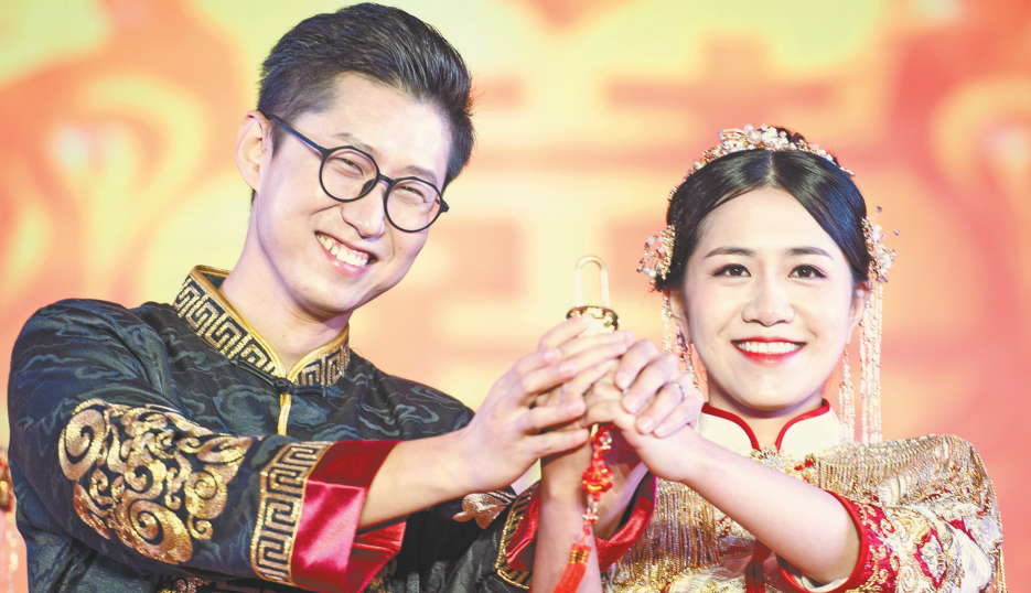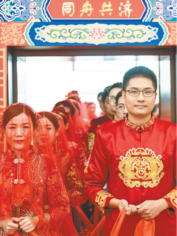 10月18日上午,在华中科技大学同济医学院附属同济医院120岁生日即将来临之际,该院60对新人在同济医院中法新城院区国际学术交流中心集体补办了迟来的婚礼。
