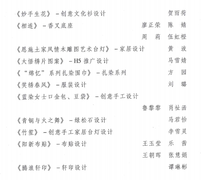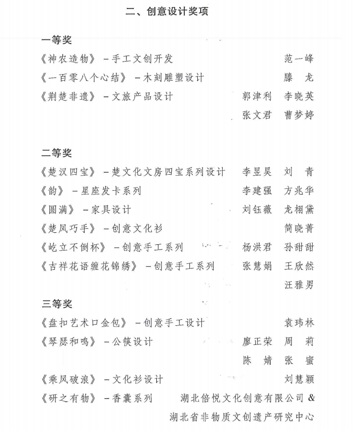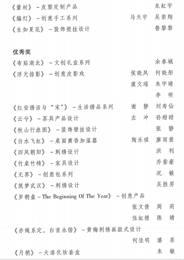 “楚凤巧手”创意设计大赛获奖名单