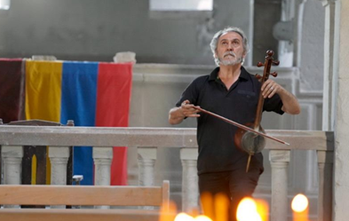 5、纳卡冲突持续 音乐家废墟中演奏鼓舞同胞 亚美尼亚和阿塞拜疆在纳戈尔诺-卡拉巴赫地区(纳卡地区)冲突持续。17日,一乐手在纳卡被毁教堂演奏音乐,鼓舞同胞。(央视网)