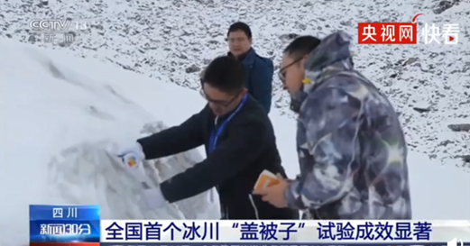 4、中科院给冰川盖被子减缓消融 今年8月,中科院研究团队采用表面铺盖隔热反光材料的方式,给位于青藏高原东缘的达古冰川盖上了一层500平方米的“被子”,经测量,“盖被子”区域的冰体消融速度明显减少,在两个月内综合减少了1米的消融量。(@人民日报)