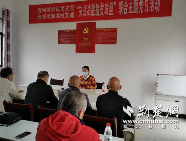 荆楚网客户端—荆楚网消息(记者王扬帆 通讯员陈立峰)10月14日,在新洲区仓埠街南湖村村委会议室里,武汉市青山区红钢城街机关党支部开展了一场“决战决胜脱贫攻坚、我为精准扶贫办实事”专题党日活动。