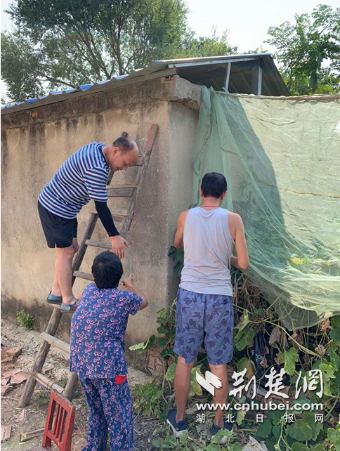 陶红林为贫困户修缮房屋。(通讯员 供图)