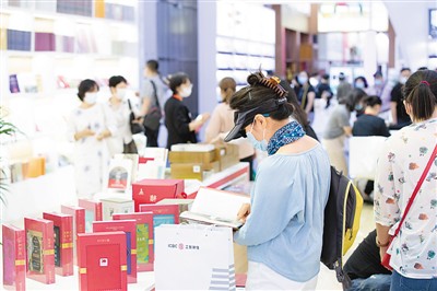 观众在2020服贸会文化服务专题展区翻阅图书。