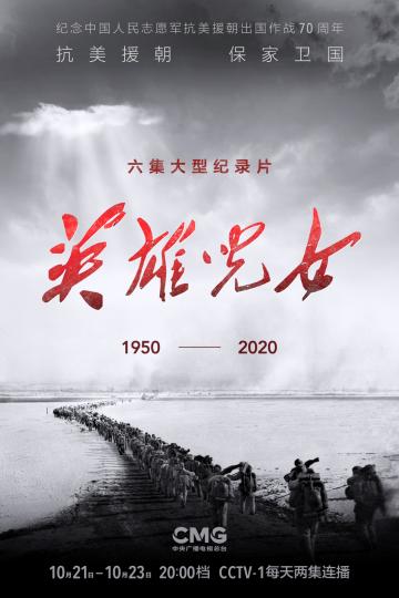 中新网北京10月21日电 (记者 高凯)为纪念中国人民志愿军抗美援朝出国作战70周年,由中共中央宣传部指导,中央广播电视总台摄制的六集大型电视纪录片《英雄儿女》,从10月21日起在中央电视台综合频道晚8点档黄金时段播出,每天两集。