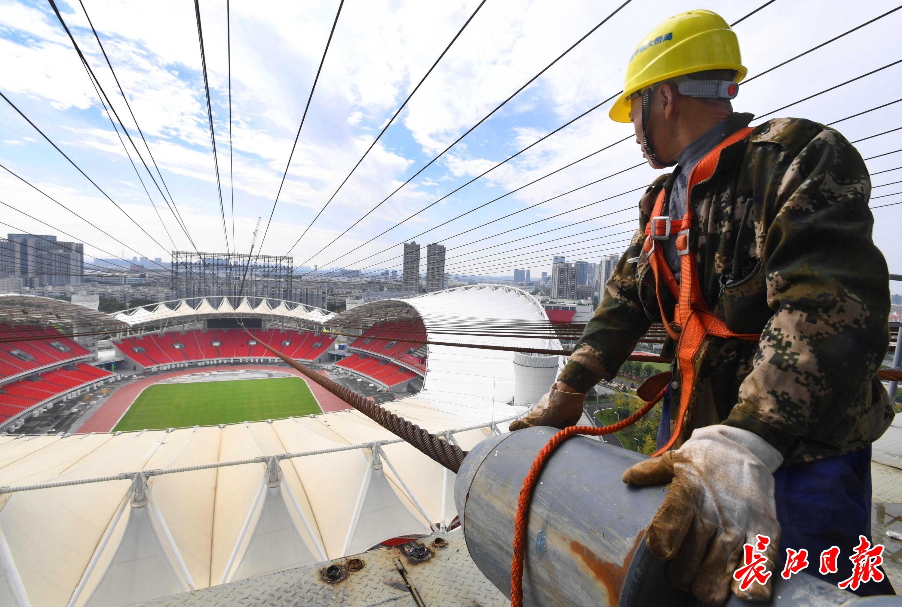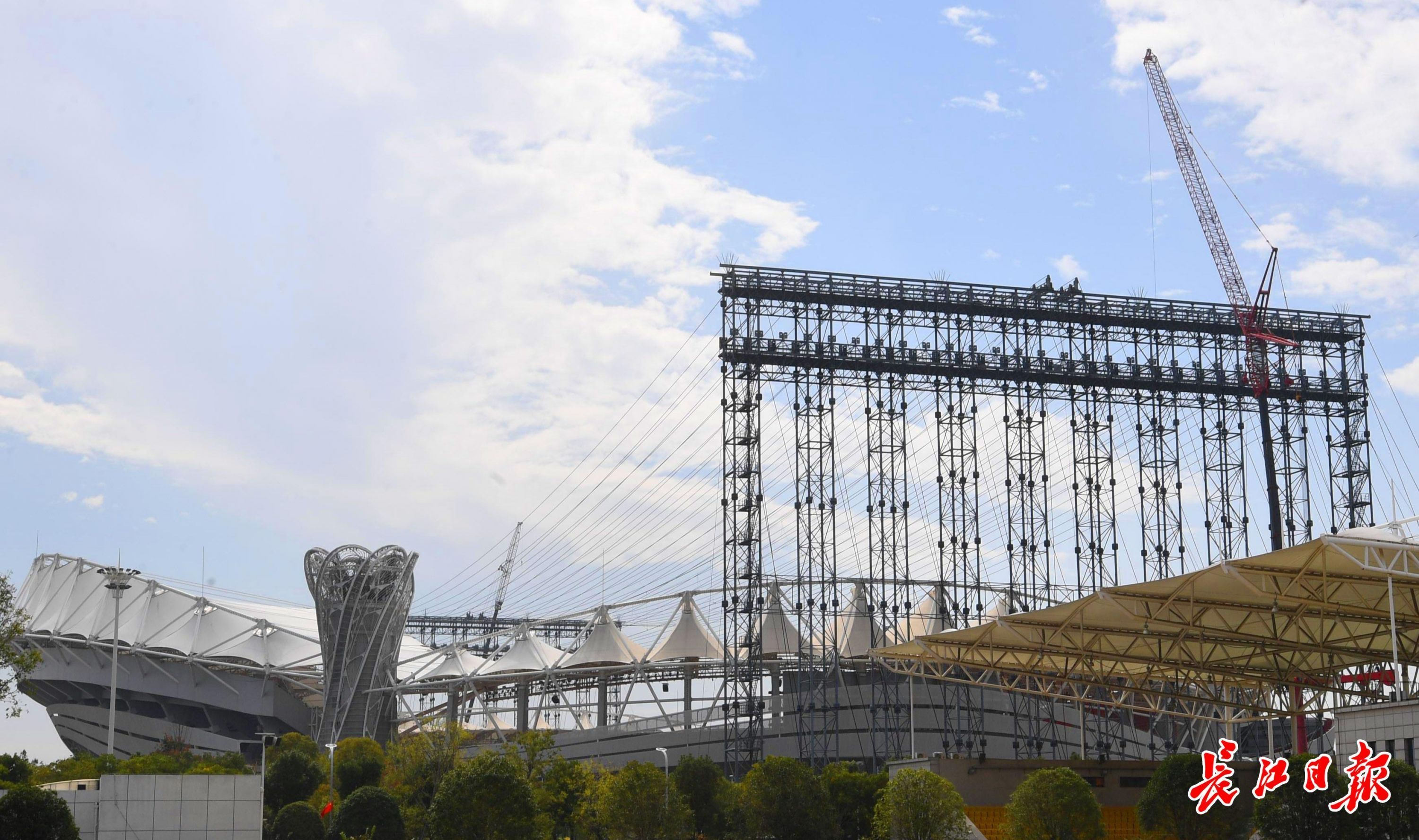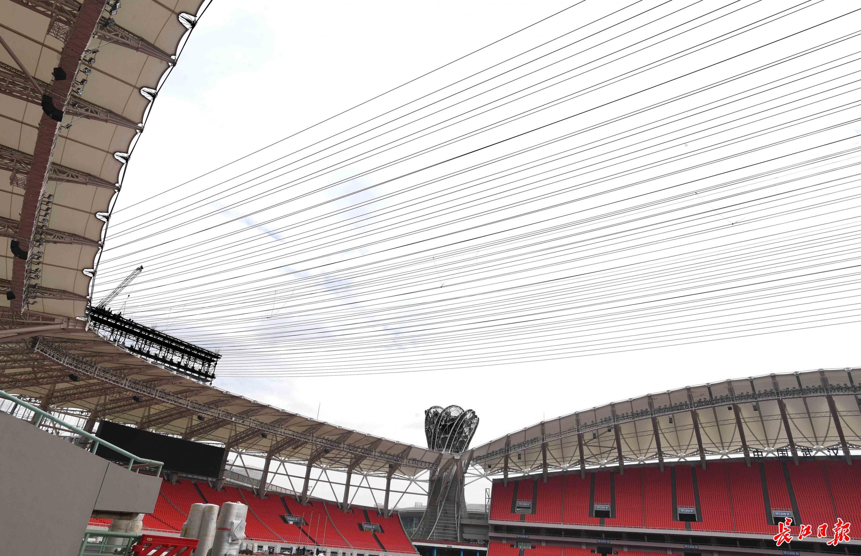 矗立在主体育场南北两侧、高达68米的威亚塔,为开闭幕式搭建起“空中舞台”。应武汉军运会开闭幕式导演组要求,武汉体育中心在主体育场南北两侧建造威亚塔,保障空中表演所需。