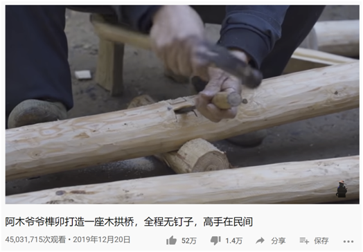 阿木爷爷在油管上有126万粉丝,视频播放量也相当不错,最高的一条被观看超过4500万次,点赞过50万。