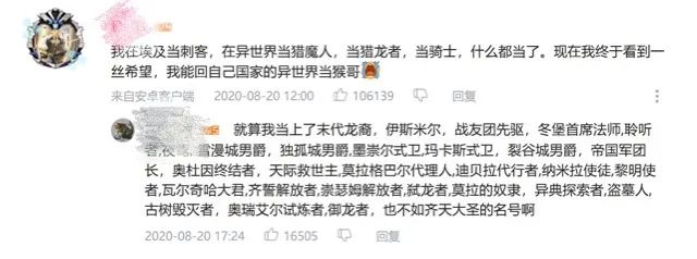 “我在埃及当刺客,在异世界当猎魔人,当猎龙者,当骑士,什么都当了。现在我终于看到一丝希望,我能回自己国家的异世界当猴哥。”