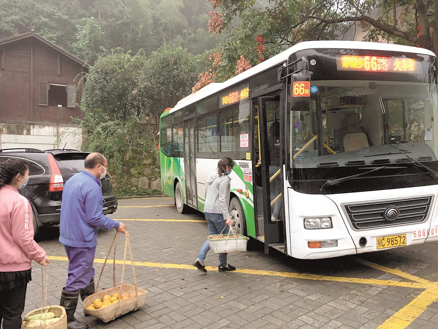10月12日17时,十堰市茅箭区茅塔乡东沟村,群山环绕,细雨沥沥。路边,几个村民正在等车进城。一会儿,司机熊祖发开着一辆66路公交车停靠。“现在坐公交到十堰市区赶夜市很方便,新鲜蔬菜很快能卖完。”52岁的村民丁义生挑着竹筐上车刷卡,筐里是自己种的红薯、包菜、玉米等。