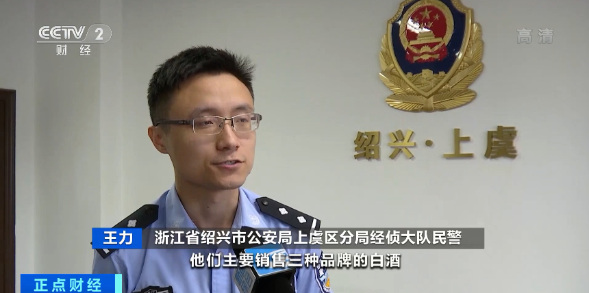 浙江省绍兴市公安局上虞区分局经侦大队民警 王力:他们主要销售三种品牌的白酒:贵州茅台、五粮液和国窖1573。