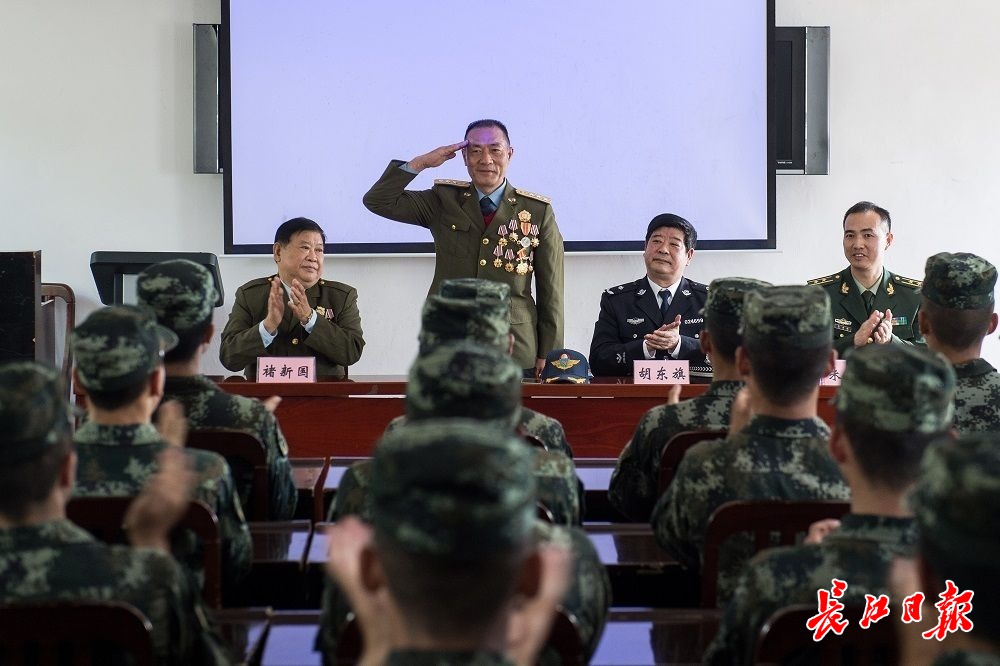 “今天,又一次回到军营,感谢长江日报推出《铁心向党 矢志不移 寻访黄继光连连长》系列报道,感谢中队邀请,让我们能共同收看纪念中国人民志愿军抗美援朝出国作战70周年大会。”面向老班长,看着军营中年轻的战友,李明龙说话的声音微微颤抖。