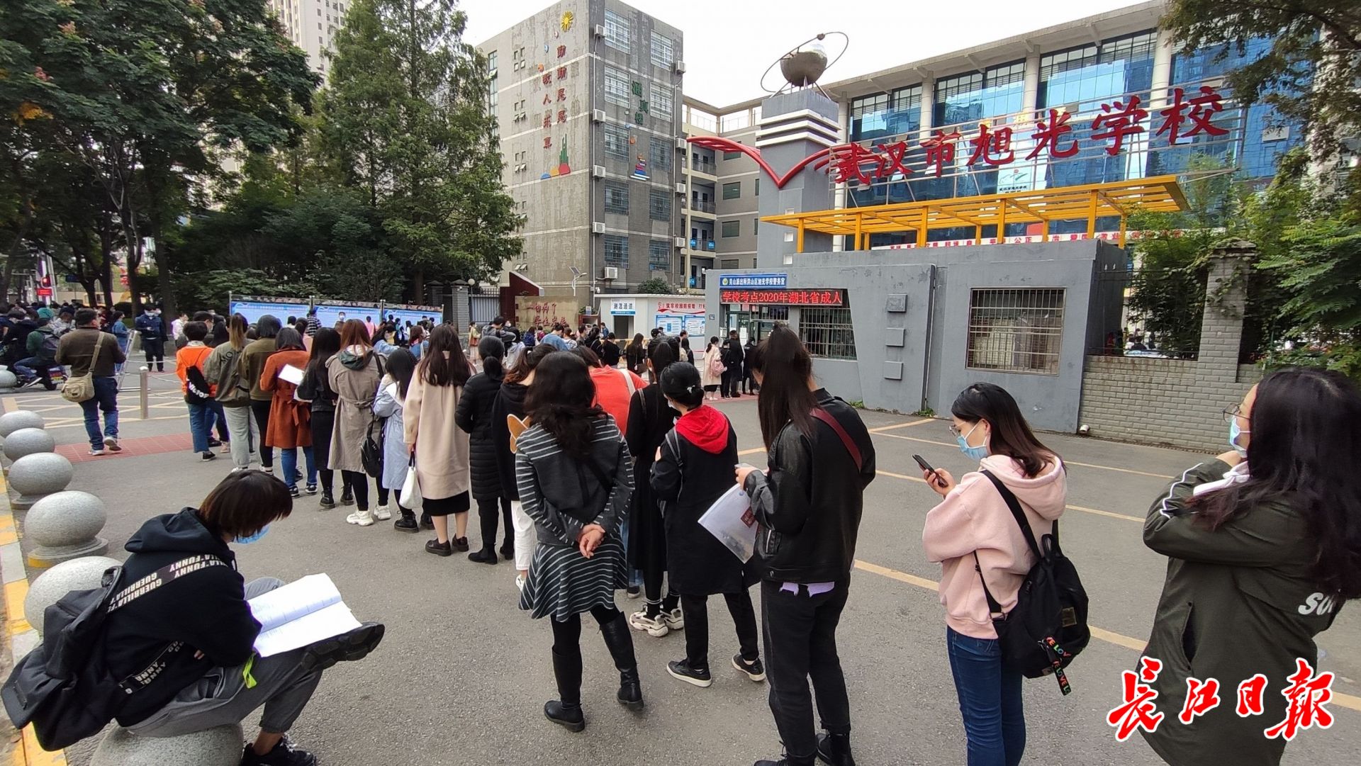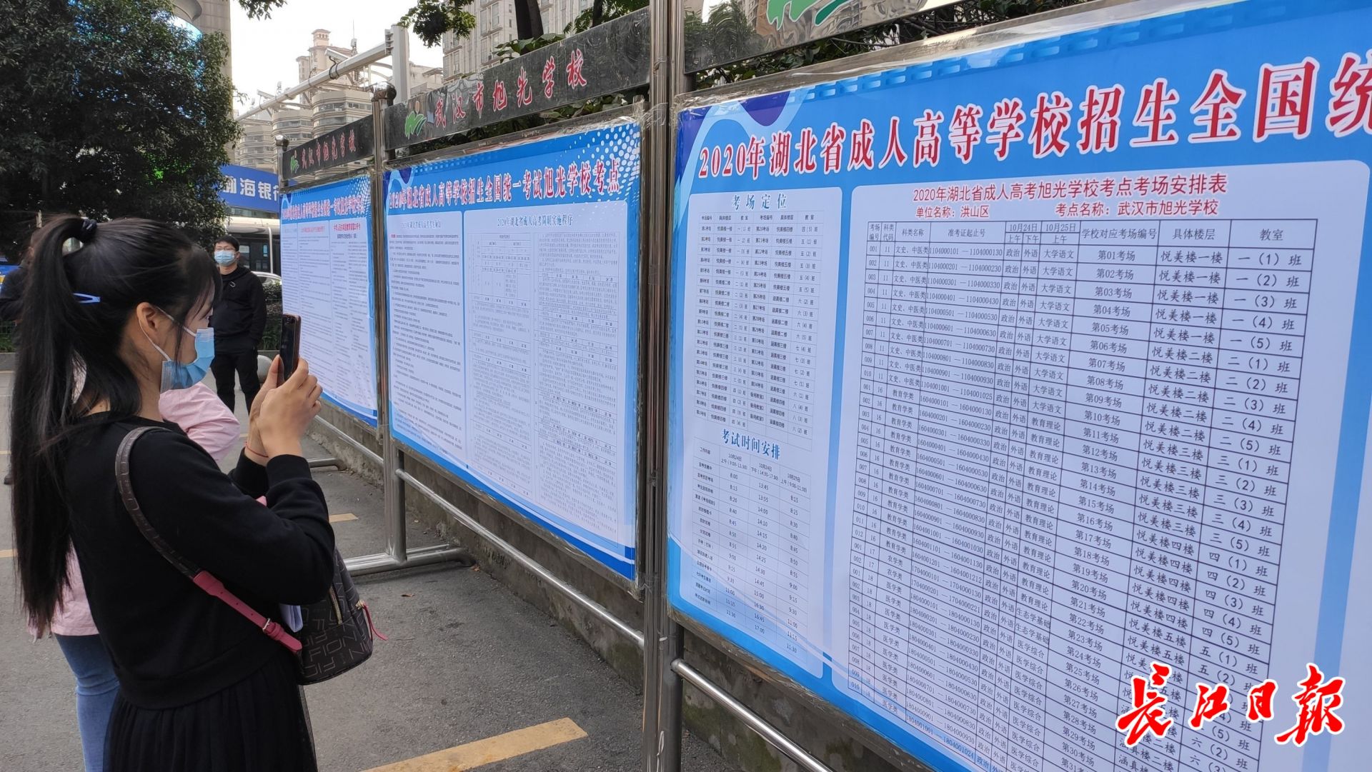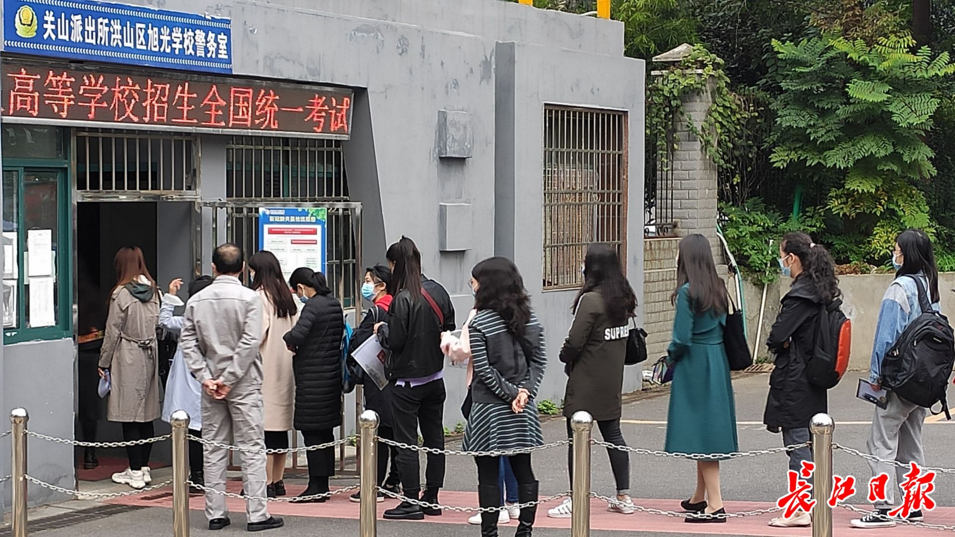长江日报-长江网10月24日讯 24日,2020年湖北省成人高等学校招生全国统一考试拉开帷幕。在武汉市旭光学校考点,考生们佩戴口罩,经过测温通道显示体温正常后方可进入考场。考试将于25日结束。(记者李子云 摄影报道)